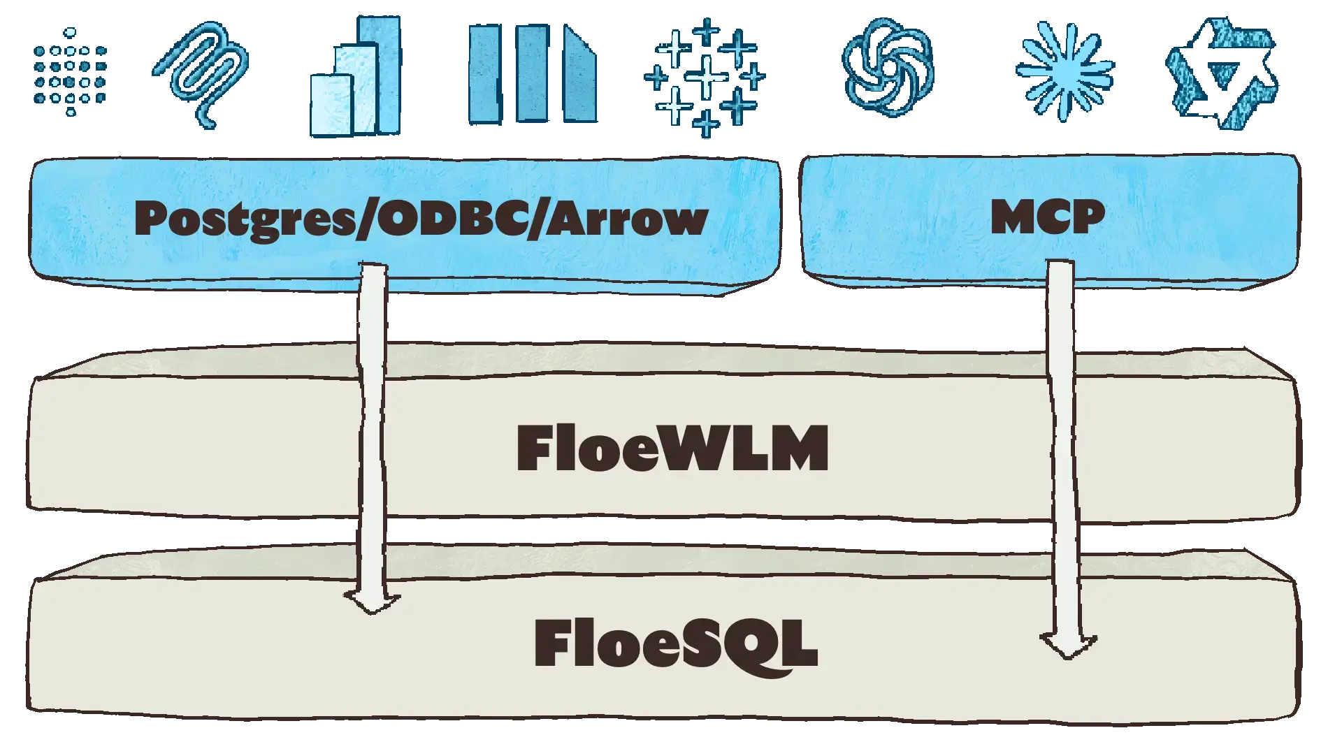Floe natively talks PostgreSQL dialect, and supports *DBC, Arrow, MCP and Python client connectivity. From Claude and ChatGPT to Metabase, Microstrategy, PowerBI and Tableau, we have you covered.