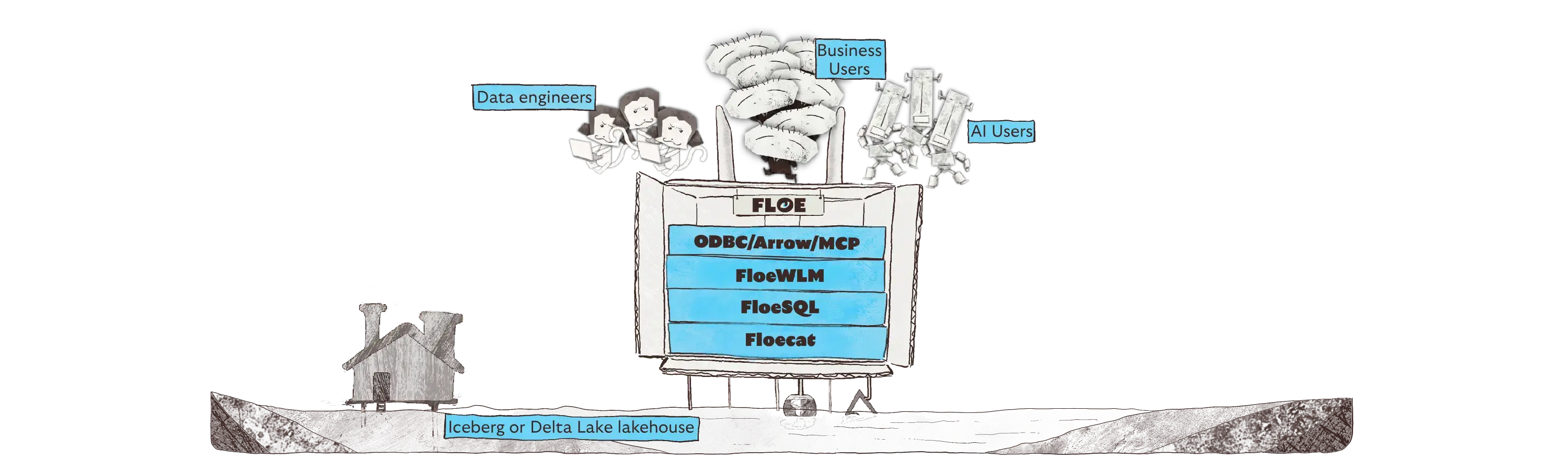 FloeSQL has solved the difficult metadata scalability issues with lakehouses. It uses intelligent caching and LLVM-based vectorized execution to deliver the query execution speed your business users expect.